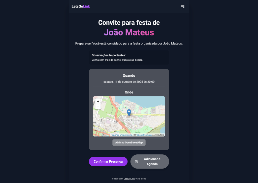 LetsGoLink: A App Grátis e Rápida que Vai Revolucionar Seus Convites de Festa!